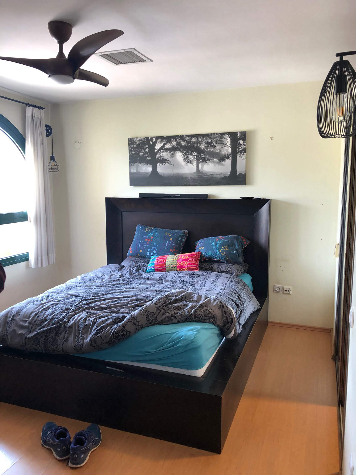 חדר השינה של אייל הוא דוגמה נהדרת ל’עיצוב קוסמטי’ שאינו דורש רכישות גדולות ומתבסס בעיקר על צבע (וחזון ויצירתיות כמובן ) – הום-סטיילינג במיטבו!