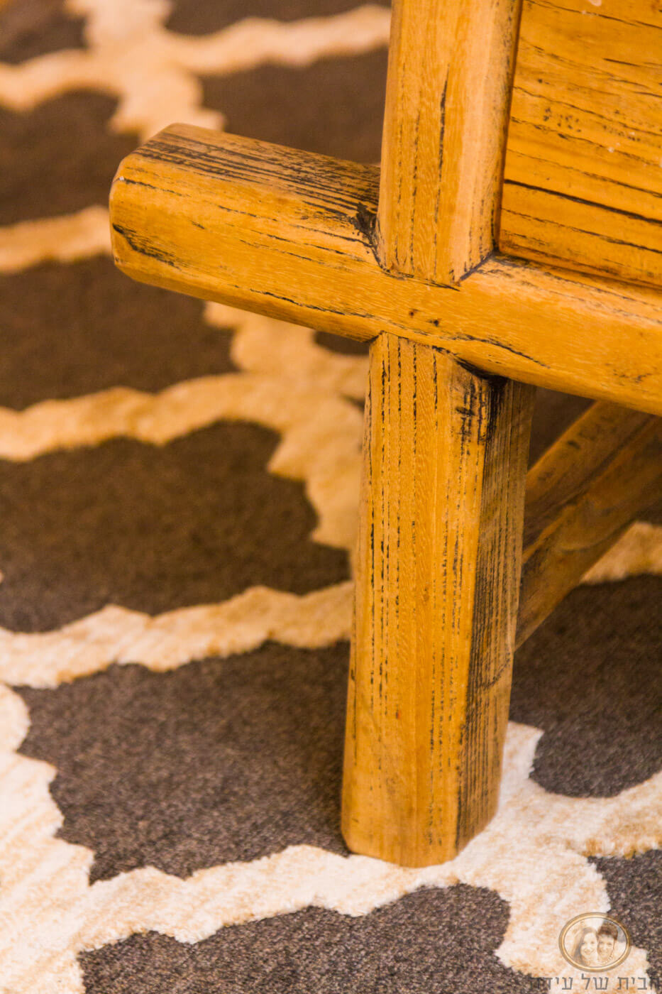 כורסת סבא עם ידיות עץ ובד ריפוד אפרפר