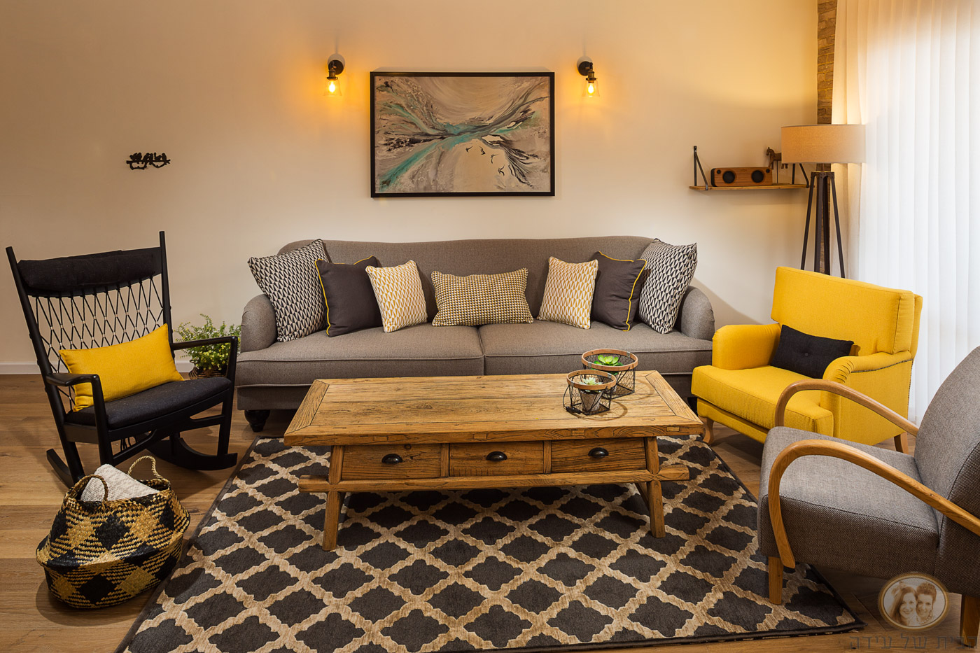 הסלון אחרי-שילובים של אפור שחור וצהוב
