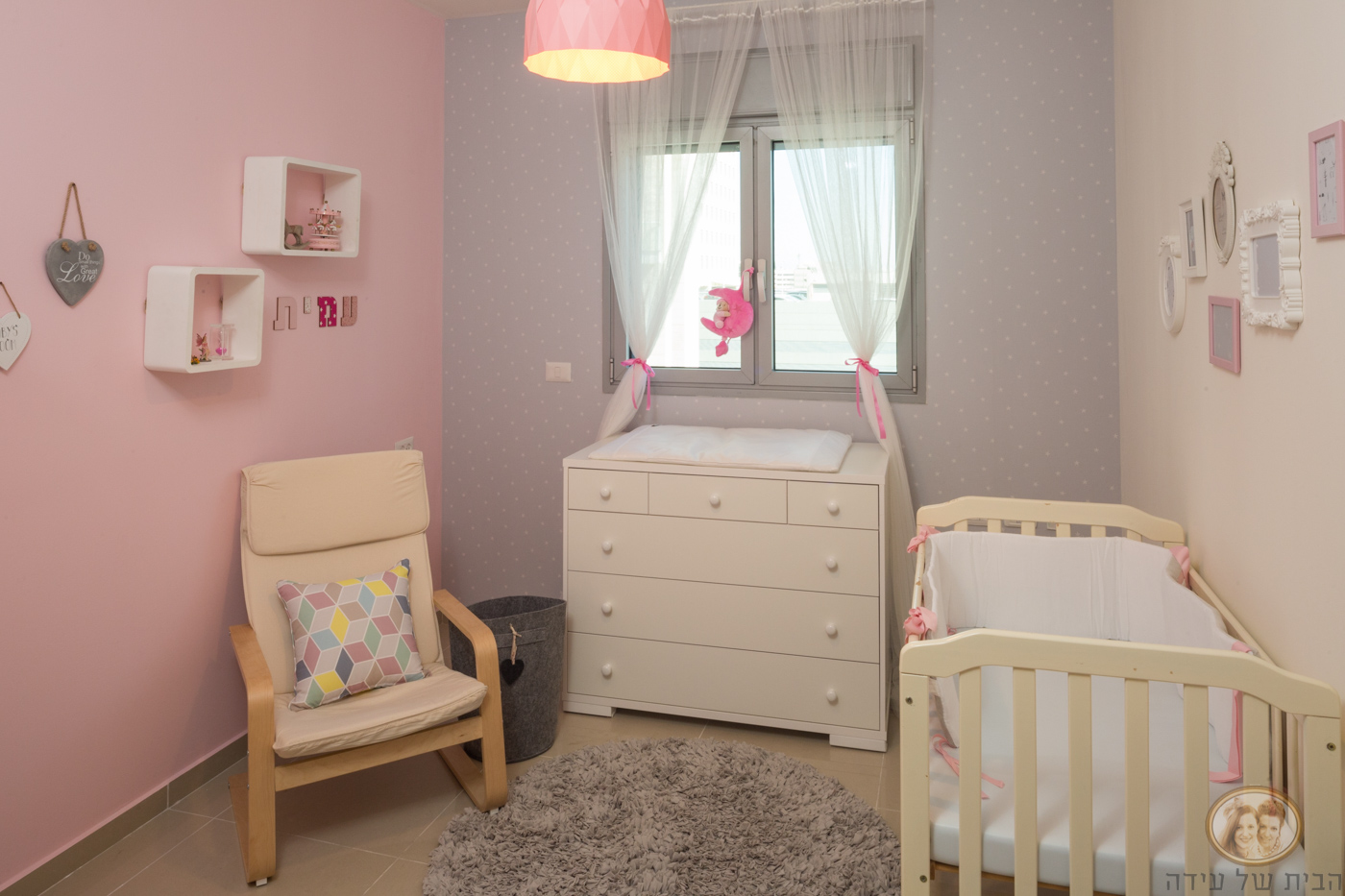 חדר ילדים אחרי בגווני אפור-ורוד